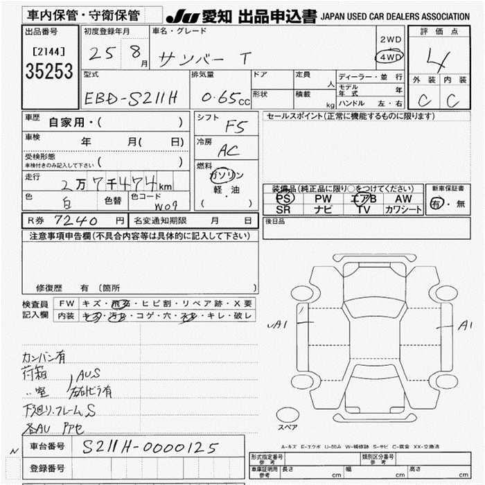 SUBARU SAMBAR TRUCK - лот 35253