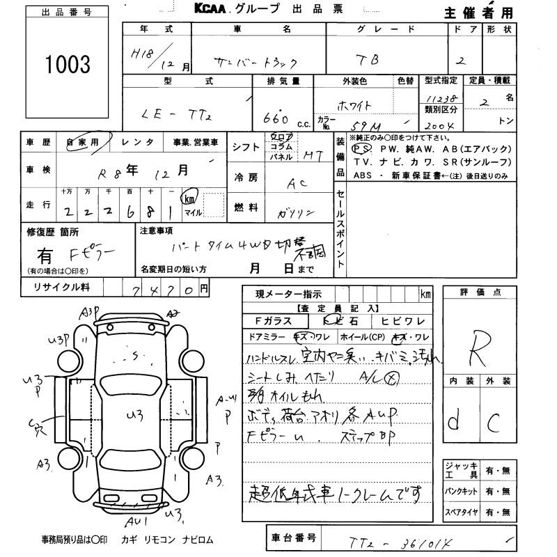 SUBARU SAMBAR TRUCK - лот 1003