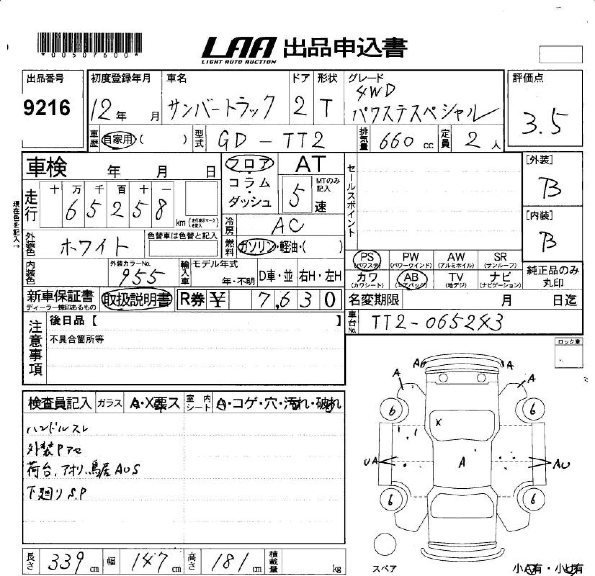 SUBARU SAMBAR TRUCK - лот 9216
