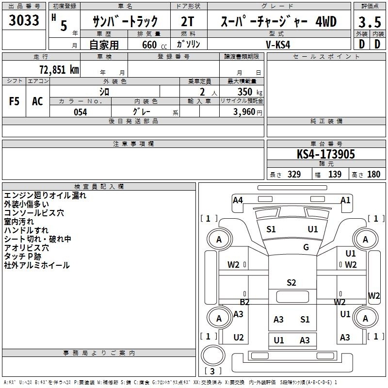 SUBARU SAMBAR TRUCK - лот 3033
