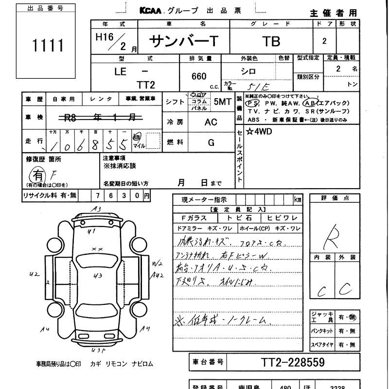 SUBARU SAMBAR TRUCK - лот 1111