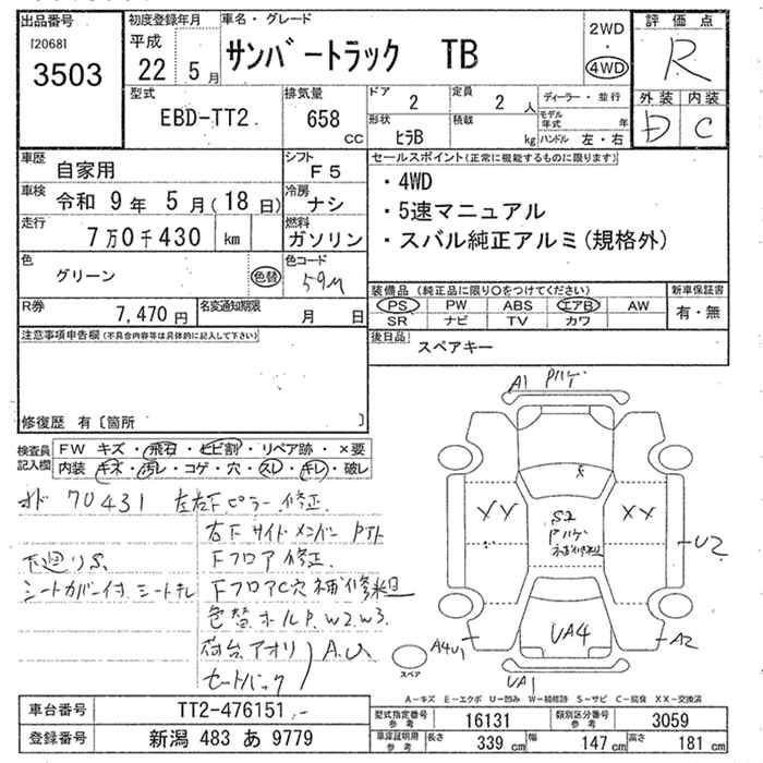 SUBARU SAMBAR TRUCK - лот 3503