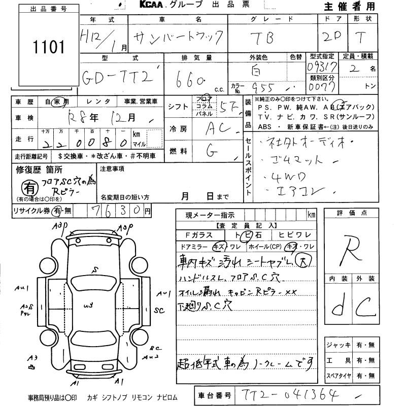 SUBARU SAMBAR TRUCK - лот 1101