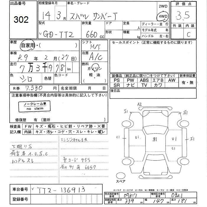SUBARU SAMBAR TRUCK - лот 302