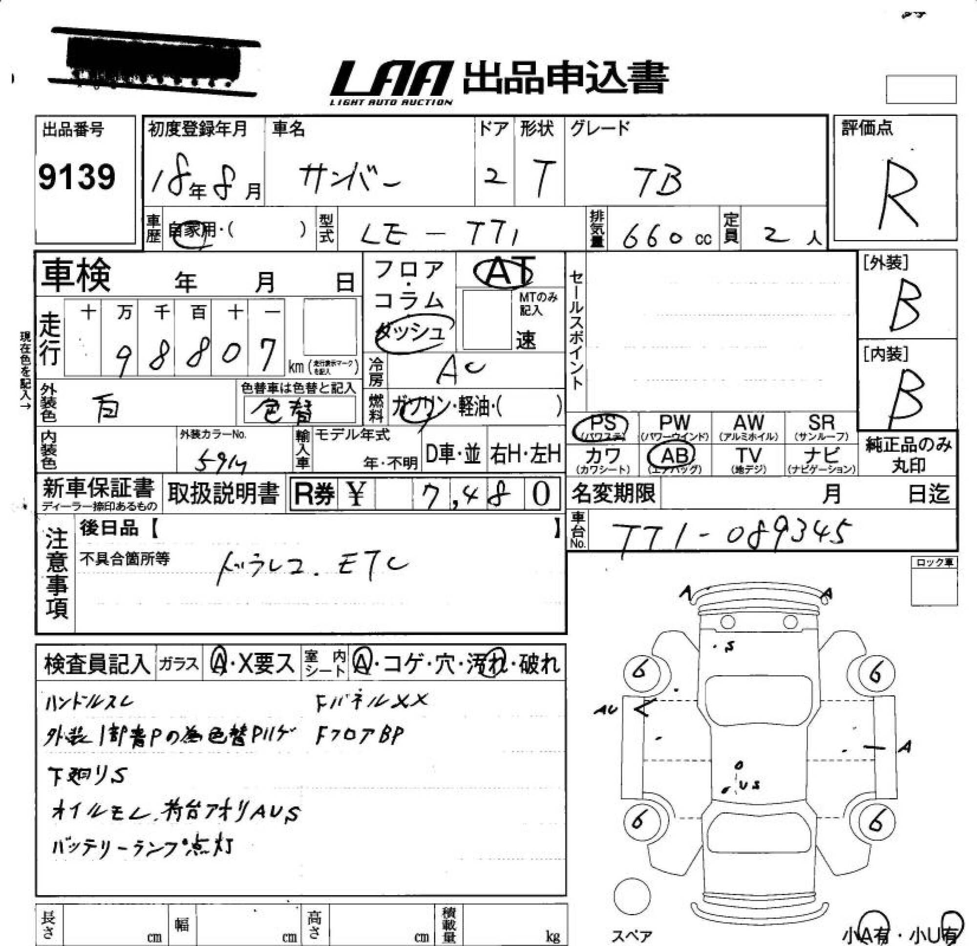 SUBARU SAMBAR TRUCK - лот 9139