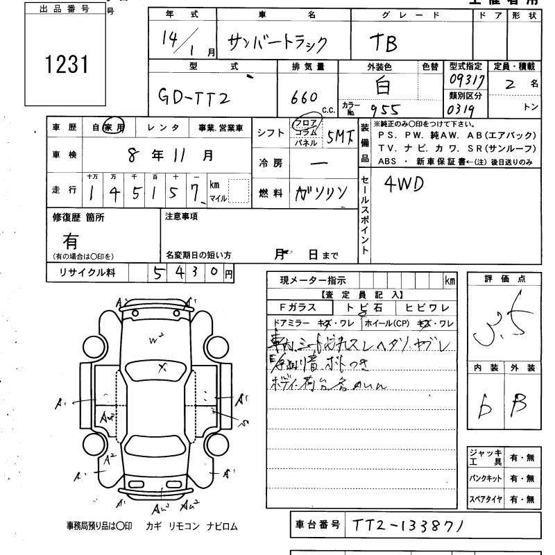 SUBARU SAMBAR TRUCK - лот 1231