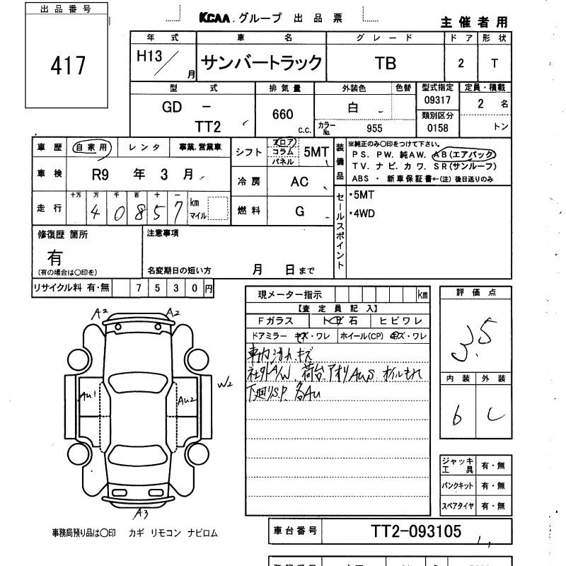 SUBARU SAMBAR TRUCK - лот 417