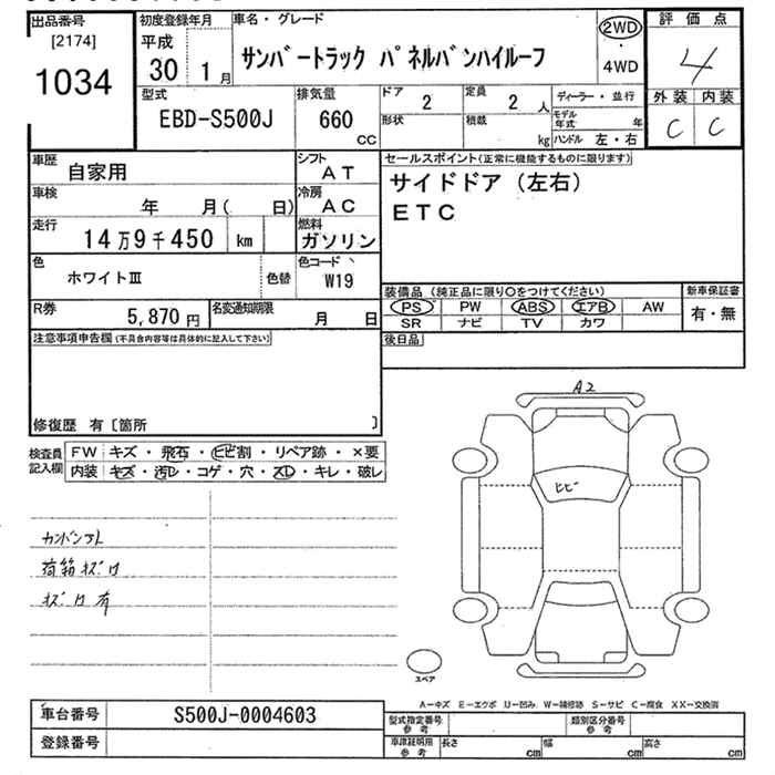 SUBARU SAMBAR TRUCK - лот 1034