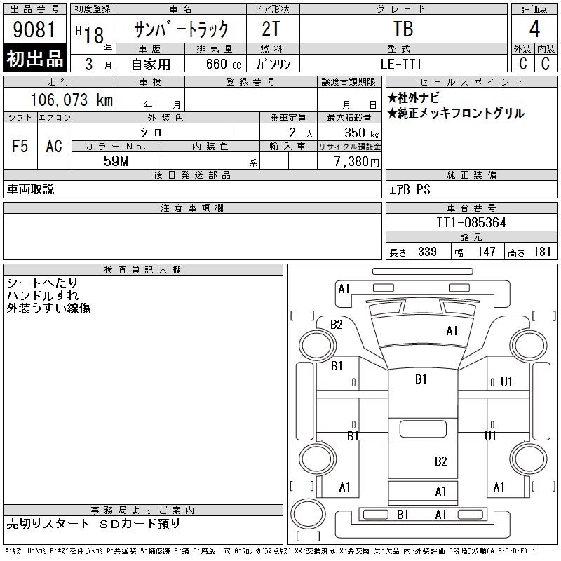SUBARU SAMBAR TRUCK - лот 9081