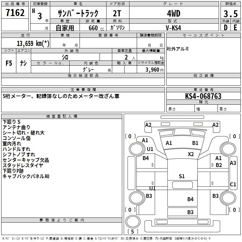 SUBARU SAMBAR TRUCK - лот 7162