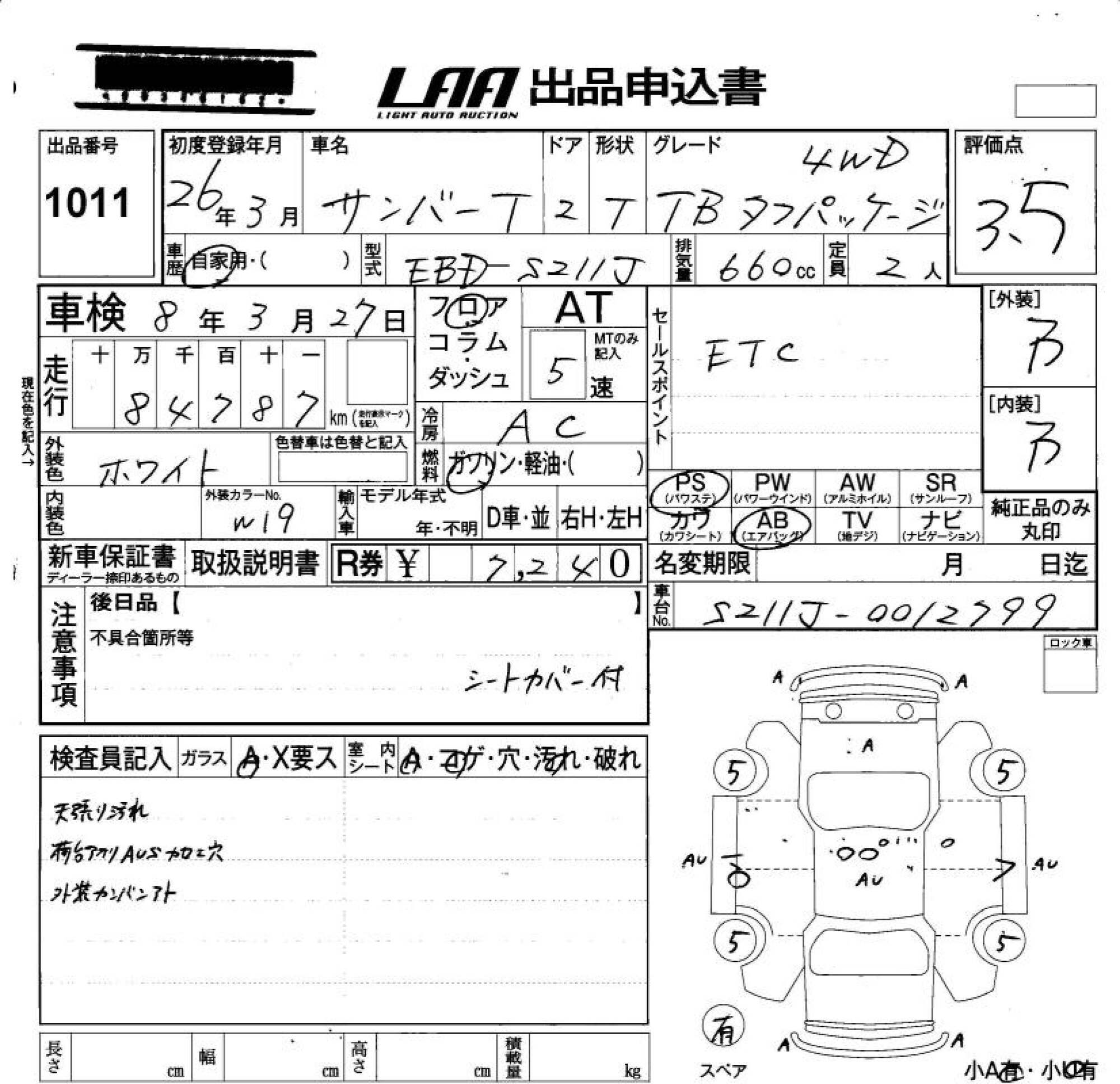 SUBARU SAMBAR TRUCK - лот 1011