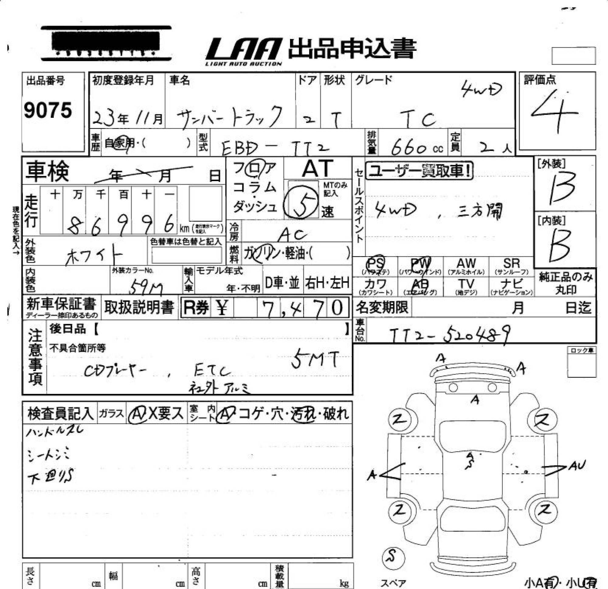 SUBARU SAMBAR TRUCK - лот 9075