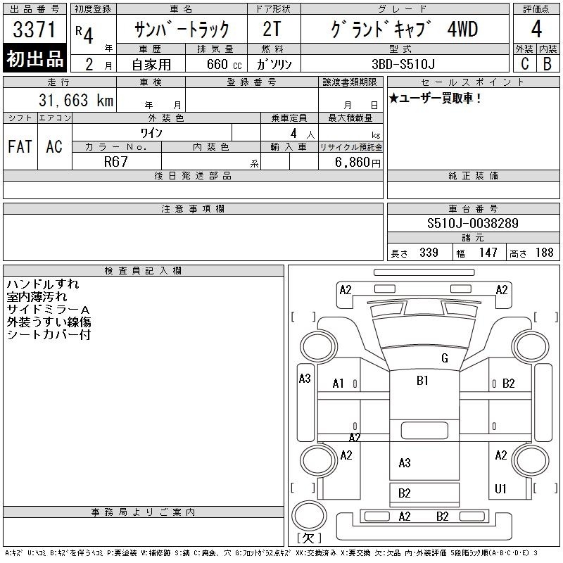 SUBARU SAMBAR TRUCK - лот 3371