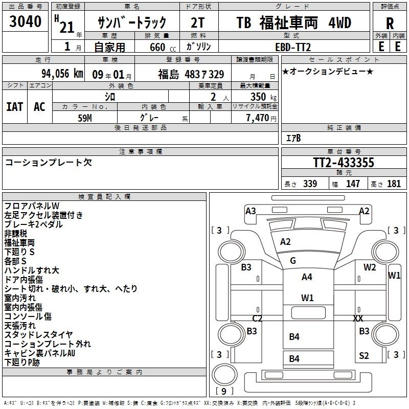 SUBARU SAMBAR TRUCK - лот 3040