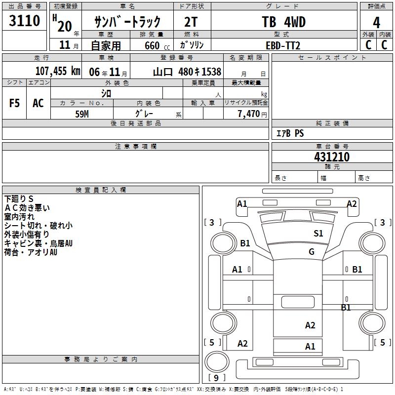 SUBARU SAMBAR TRUCK - лот 3110