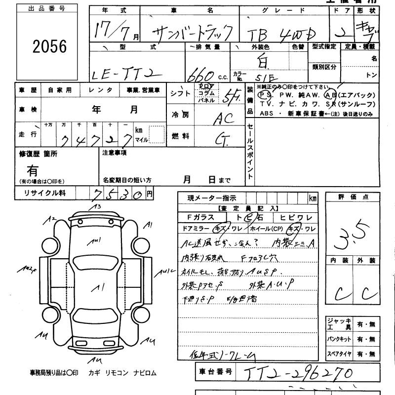 SUBARU SAMBAR TRUCK - лот 2056