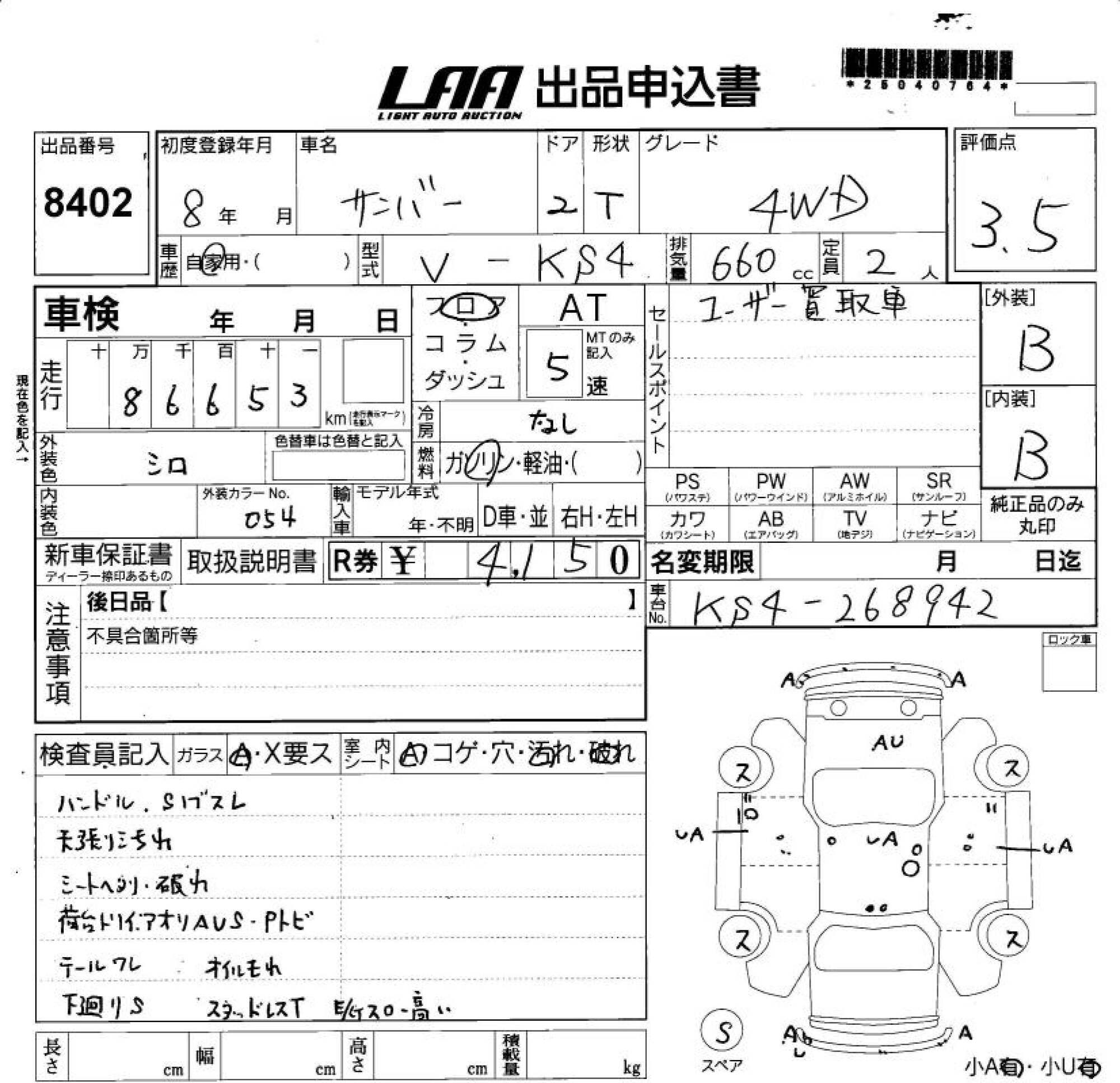 SUBARU SAMBAR TRUCK - лот 8402