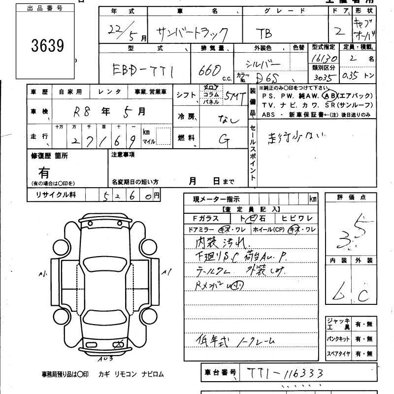 SUBARU SAMBAR TRUCK - лот 3639