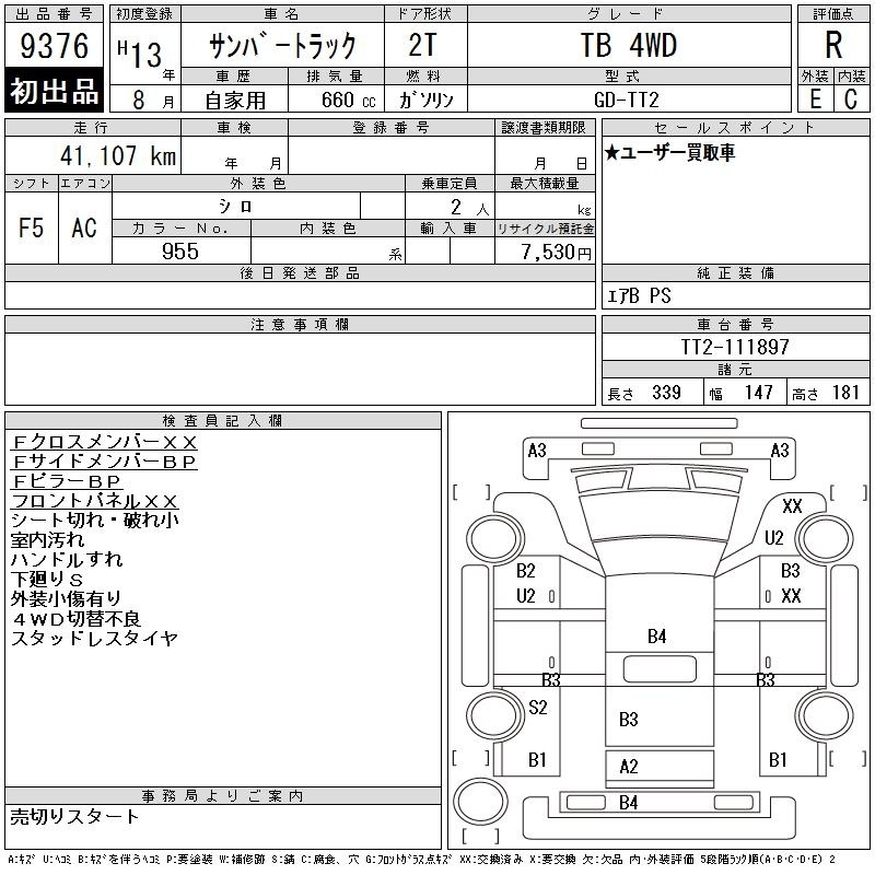 SUBARU SAMBAR TRUCK - лот 9376