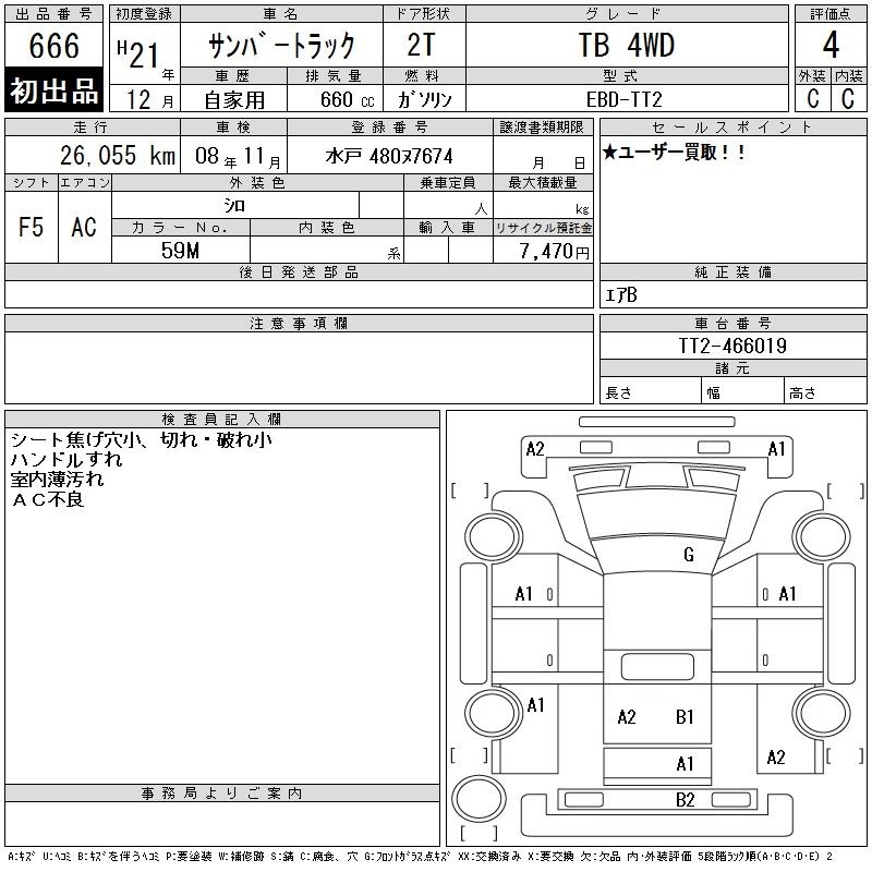 SUBARU SAMBAR TRUCK - лот 666