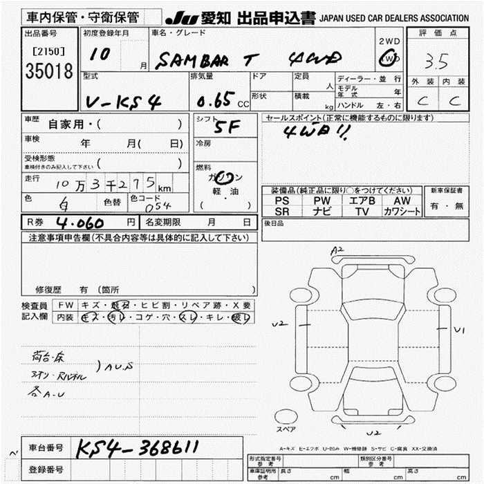 SUBARU SAMBAR TRUCK - лот 35018
