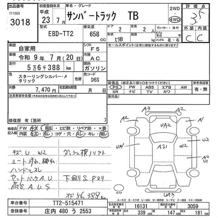 SUBARU SAMBAR TRUCK - лот 3018