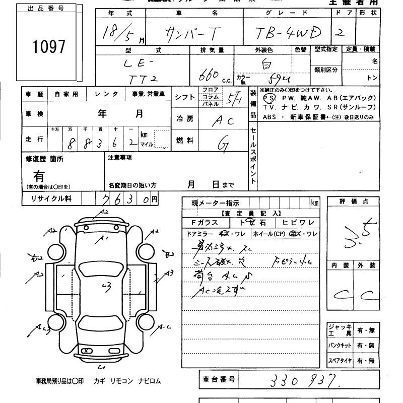 SUBARU SAMBAR TRUCK - лот 1097