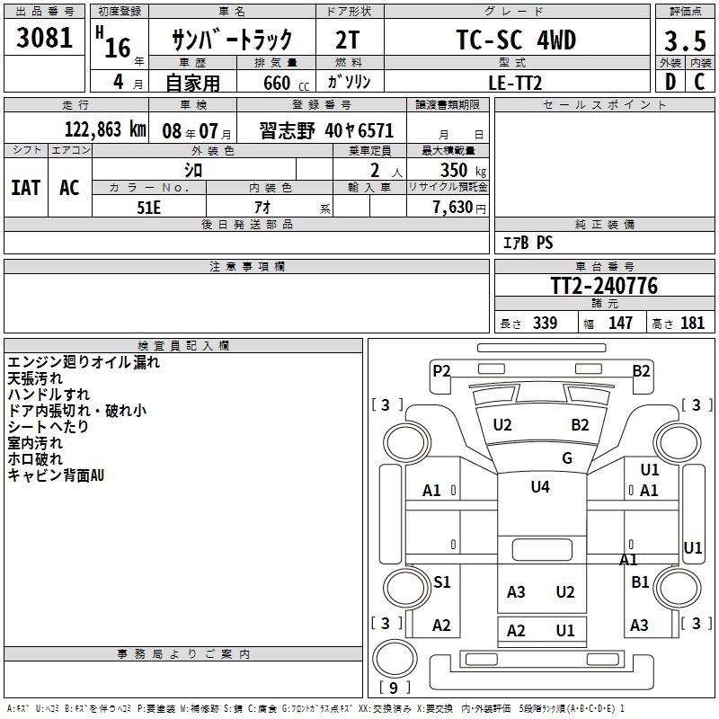 SUBARU SAMBAR TRUCK - лот 3081