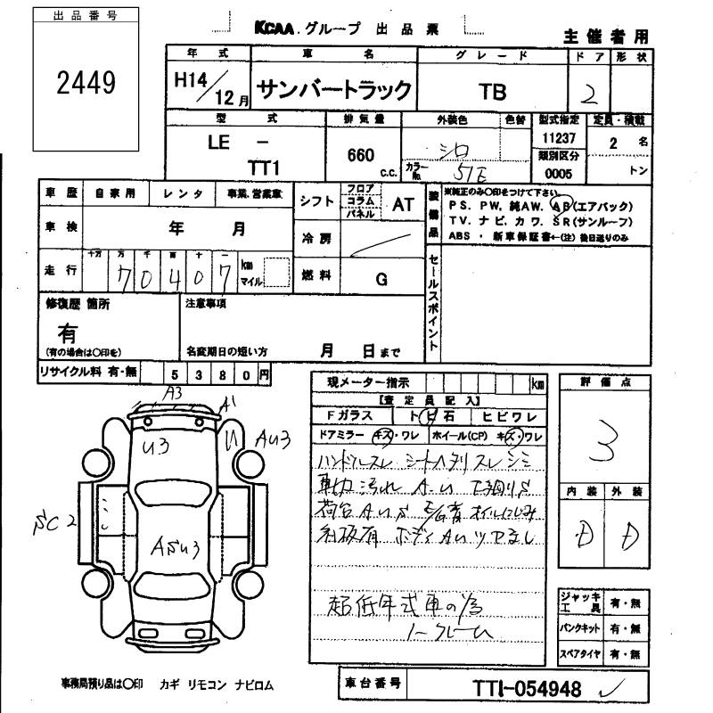 SUBARU SAMBAR TRUCK - лот 2449