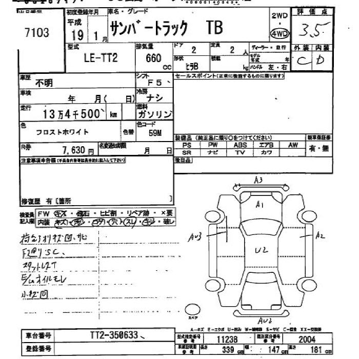 SUBARU SAMBAR TRUCK - лот 7103