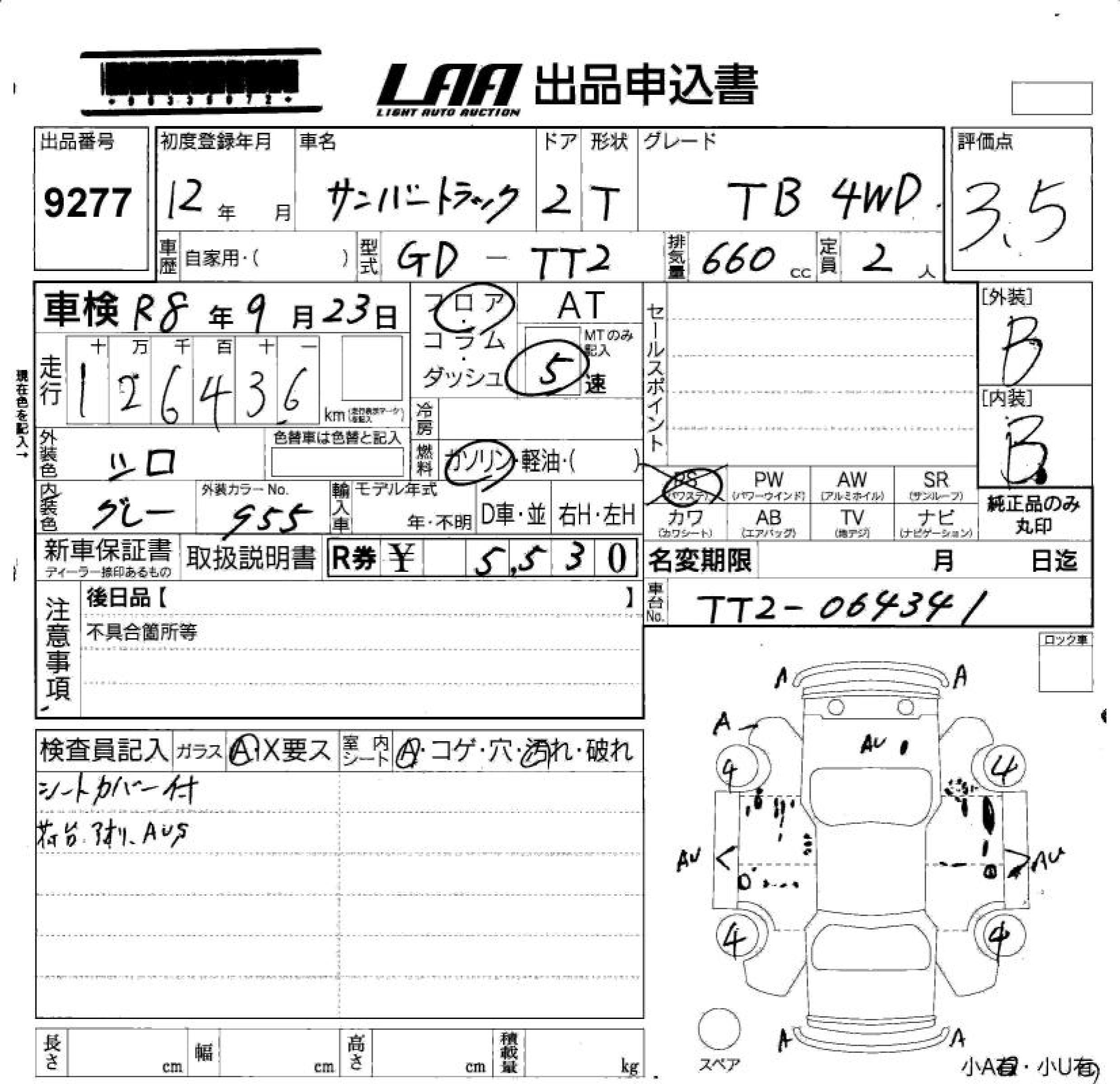 SUBARU SAMBAR TRUCK - лот 9277