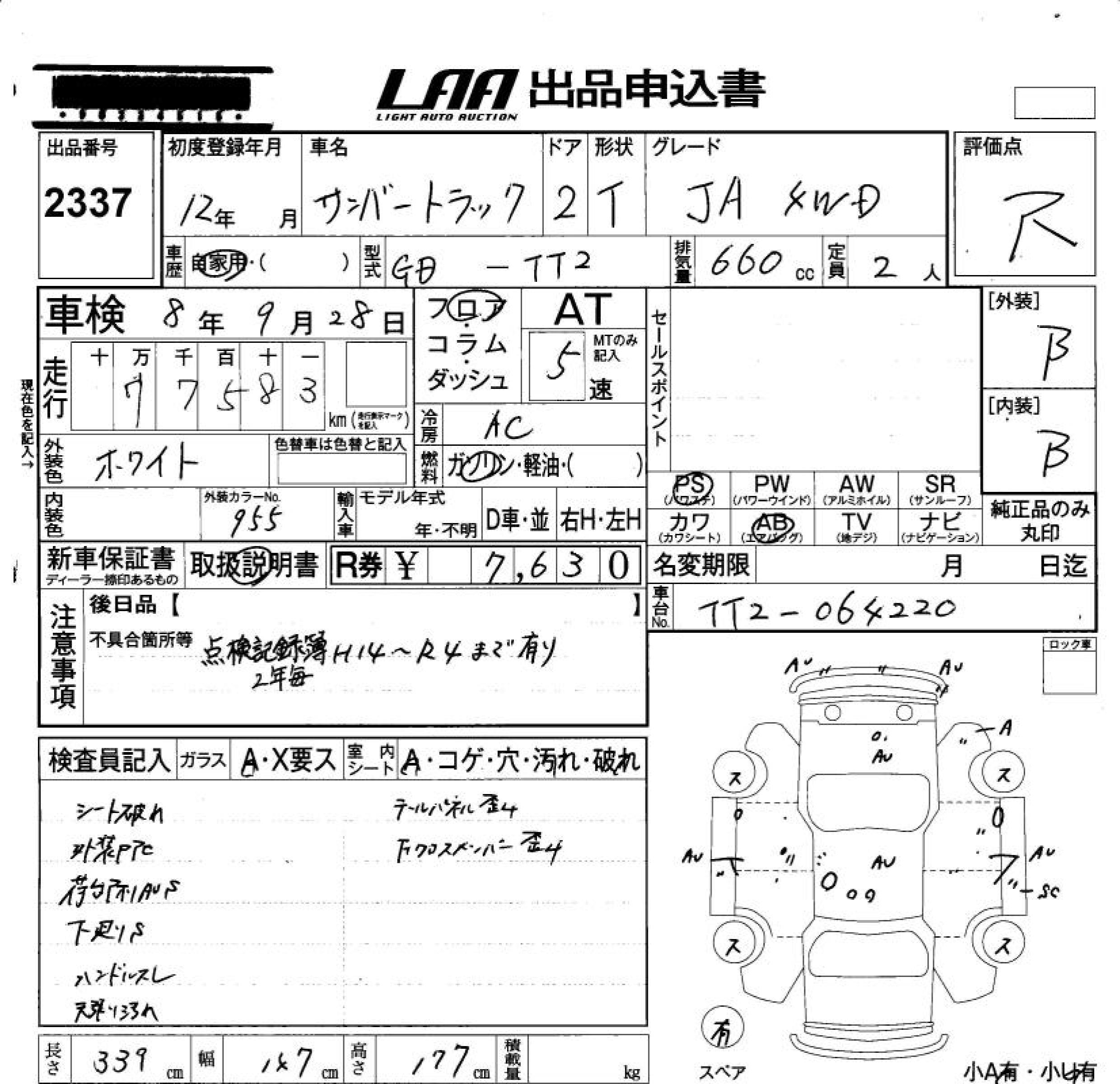 SUBARU SAMBAR TRUCK - лот 2337