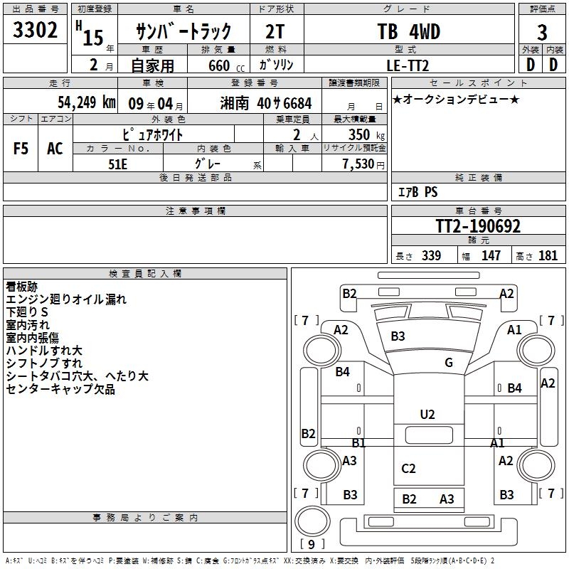 SUBARU SAMBAR TRUCK - лот 3302