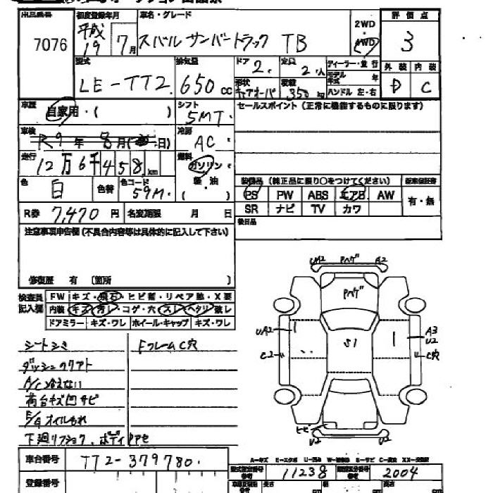 SUBARU SAMBAR TRUCK - лот 7076