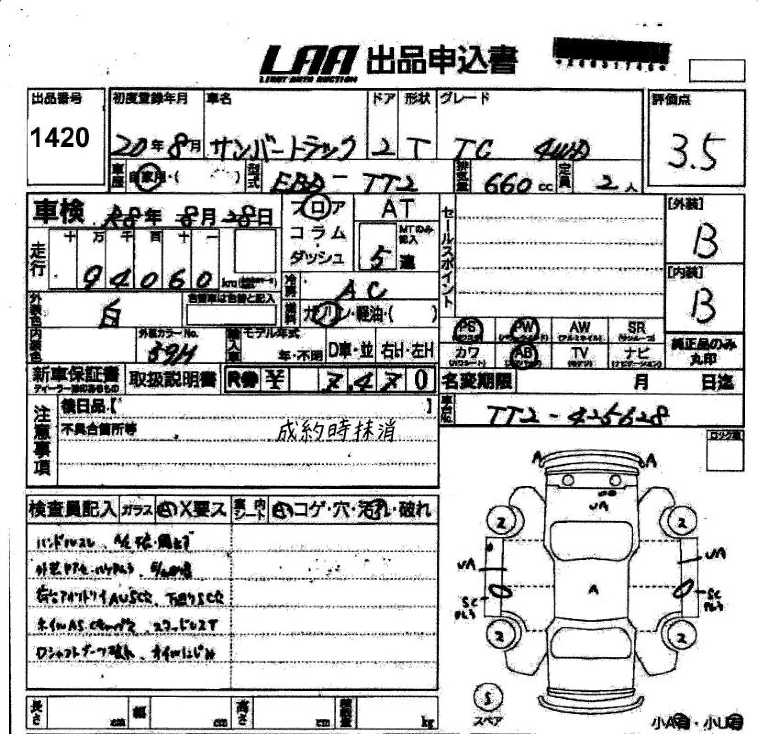 SUBARU SAMBAR TRUCK - лот 1420