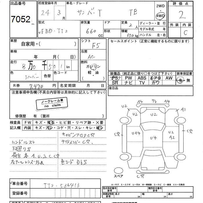 SUBARU SAMBAR TRUCK - лот 7052