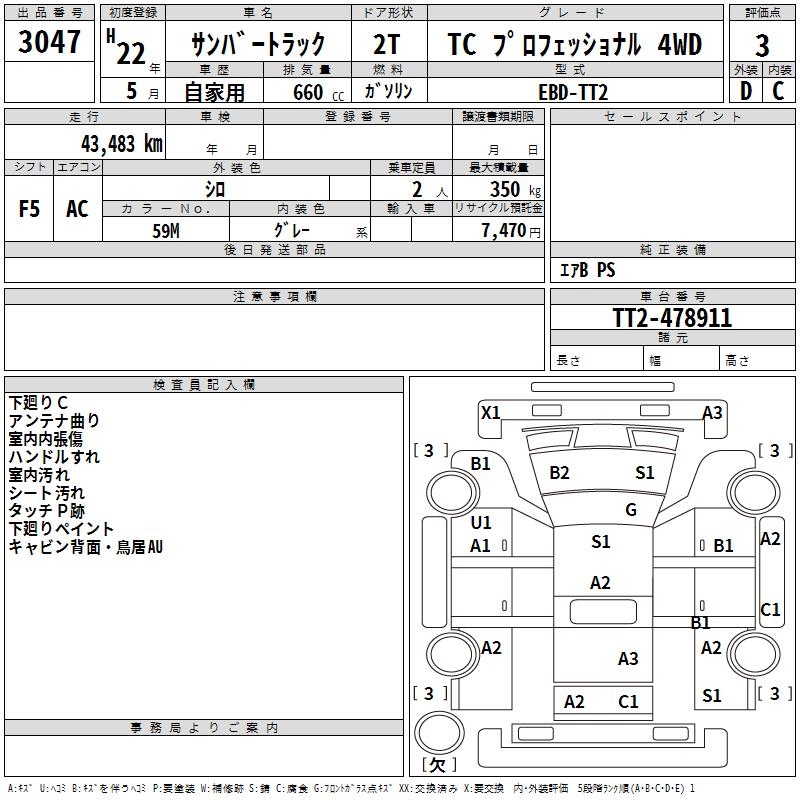 SUBARU SAMBAR TRUCK - лот 3047