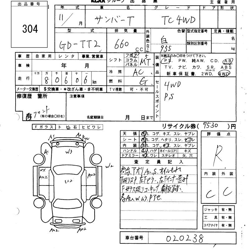 SUBARU SAMBAR TRUCK - лот 304
