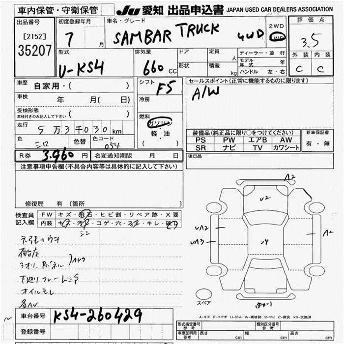SUBARU SAMBAR TRUCK - лот 35207