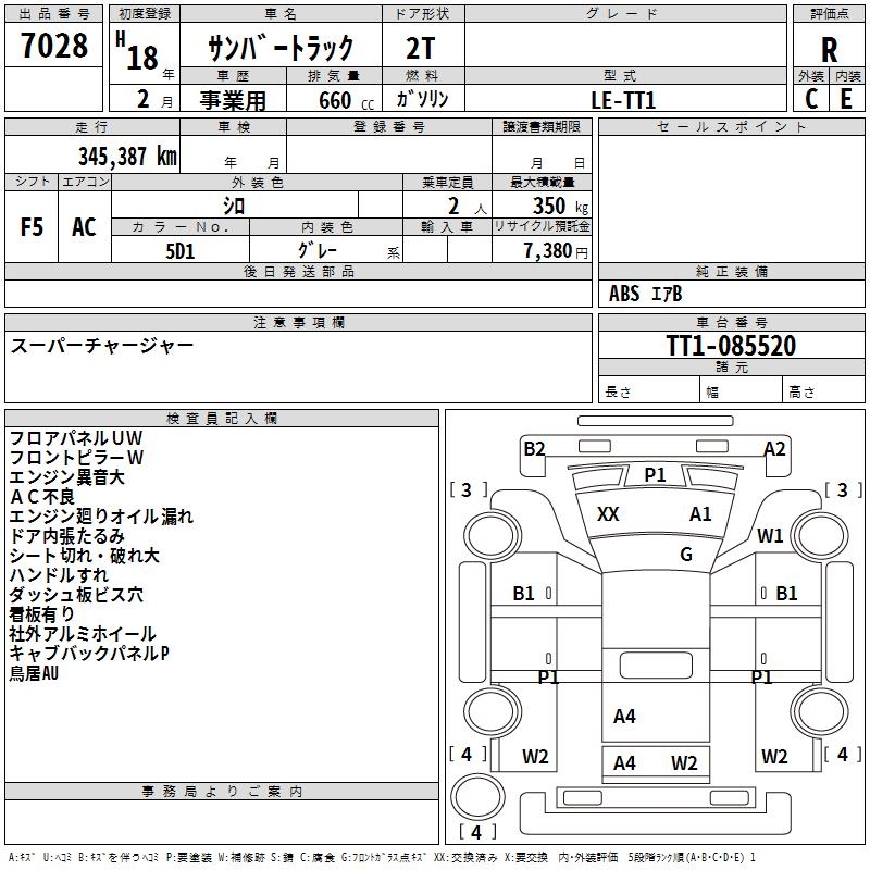 SUBARU SAMBAR TRUCK - лот 7028