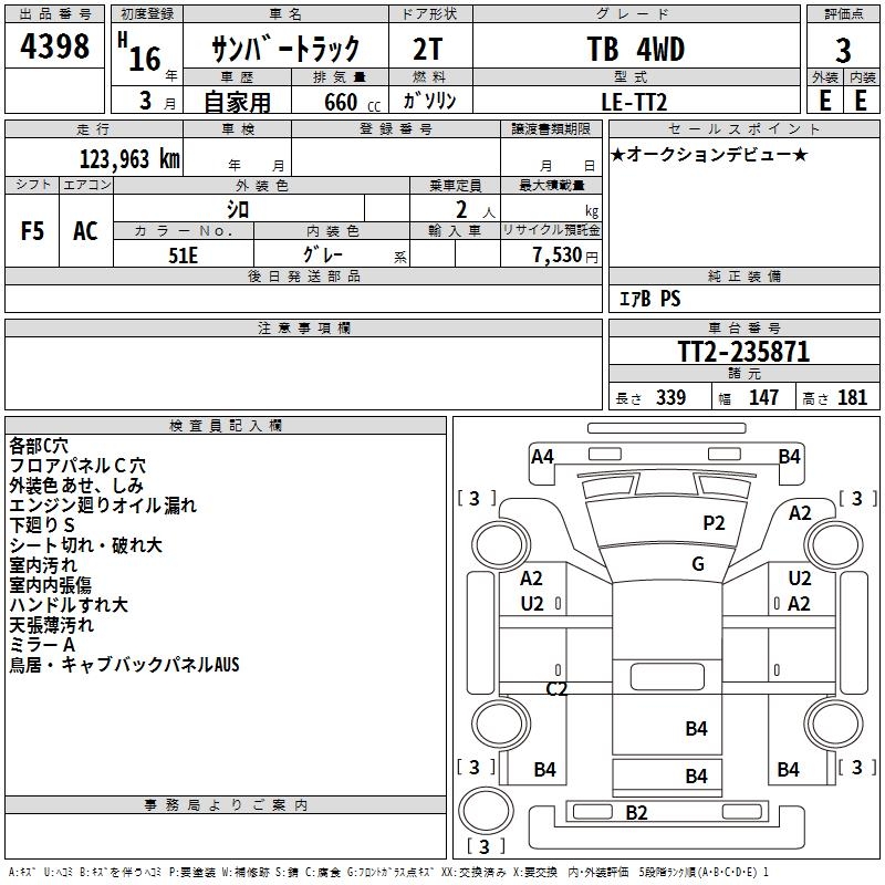 SUBARU SAMBAR TRUCK - лот 4398