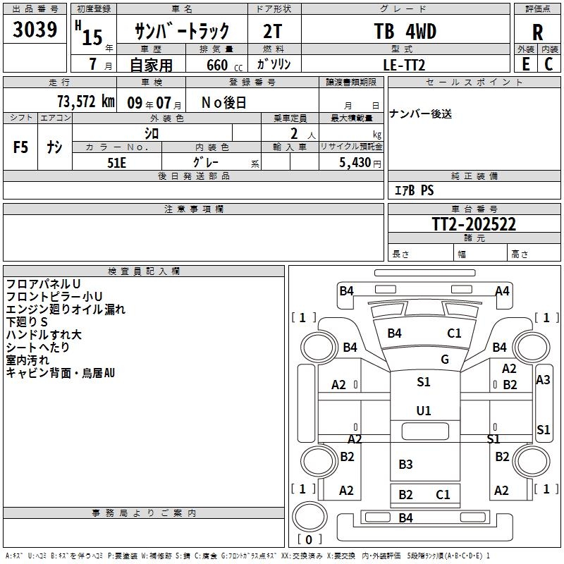SUBARU SAMBAR TRUCK - лот 3039