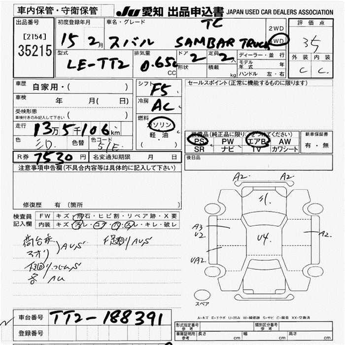 SUBARU SAMBAR TRUCK - лот 35215