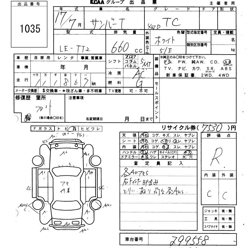 SUBARU SAMBAR TRUCK - лот 1035