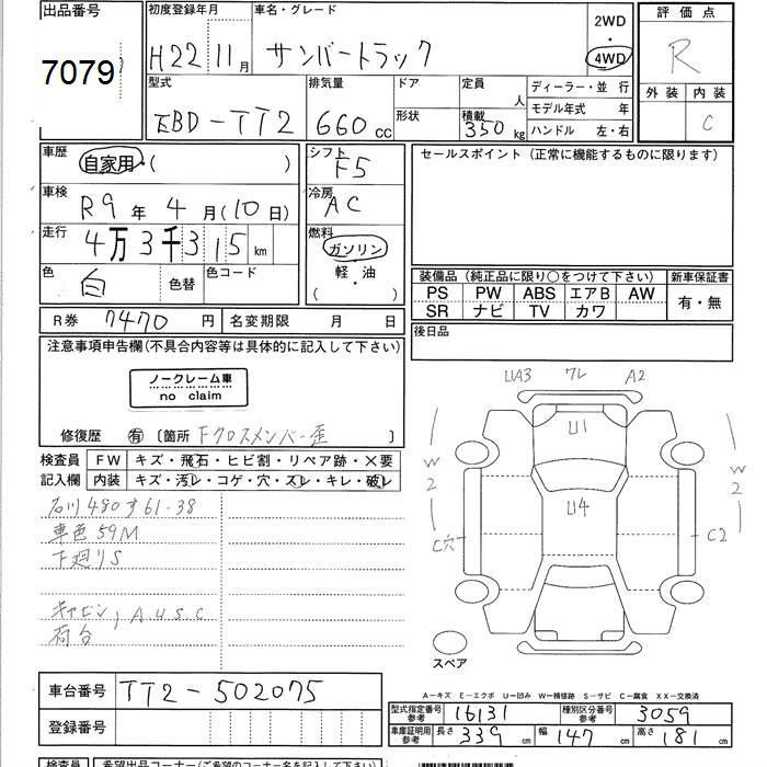 SUBARU SAMBAR TRUCK - лот 7079
