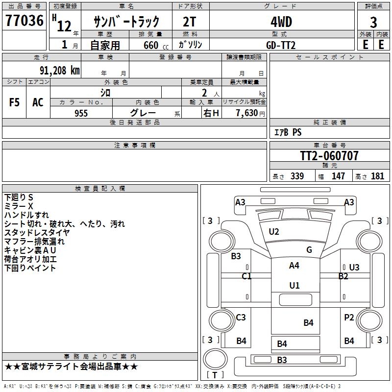 SUBARU SAMBAR TRUCK - лот 77036