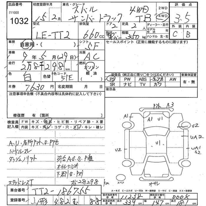 SUBARU SAMBAR TRUCK - лот 1032