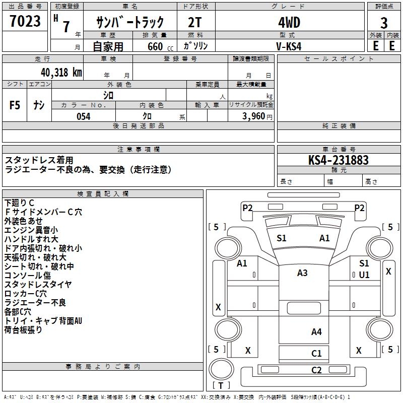 SUBARU SAMBAR TRUCK - лот 7023