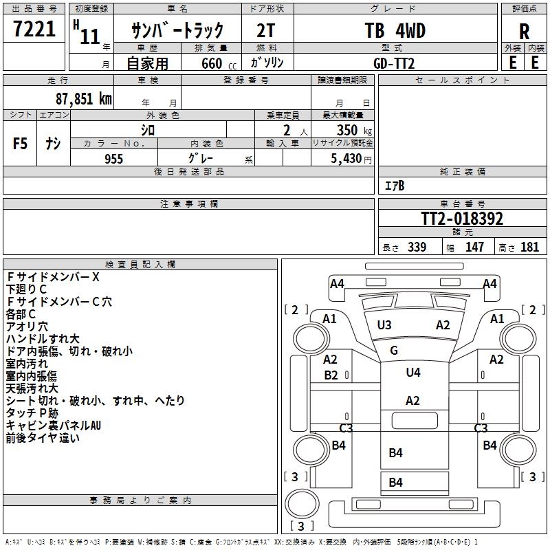 SUBARU SAMBAR TRUCK - лот 7221