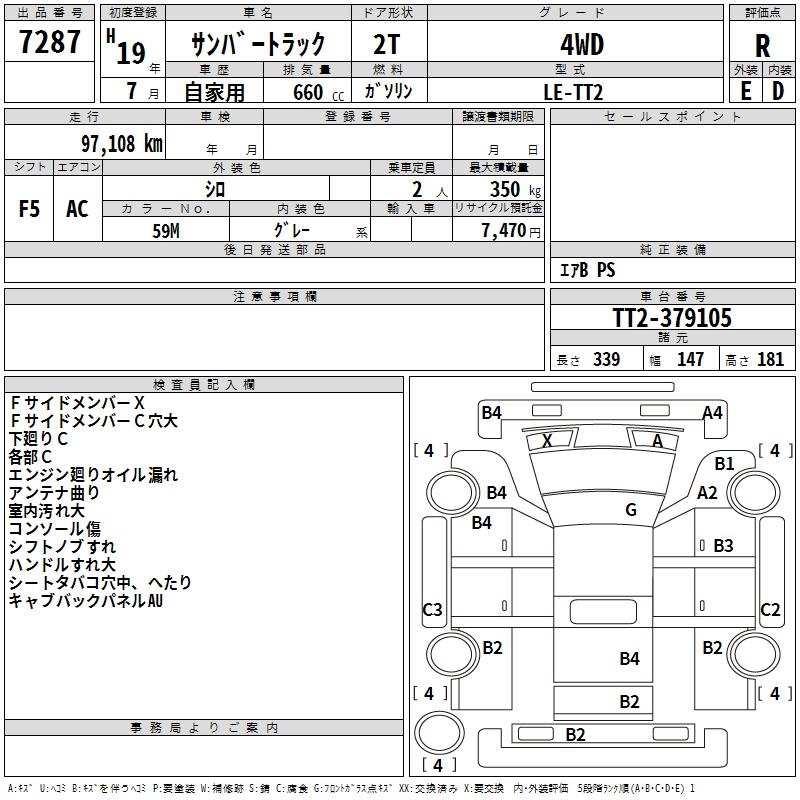 SUBARU SAMBAR TRUCK - лот 7287